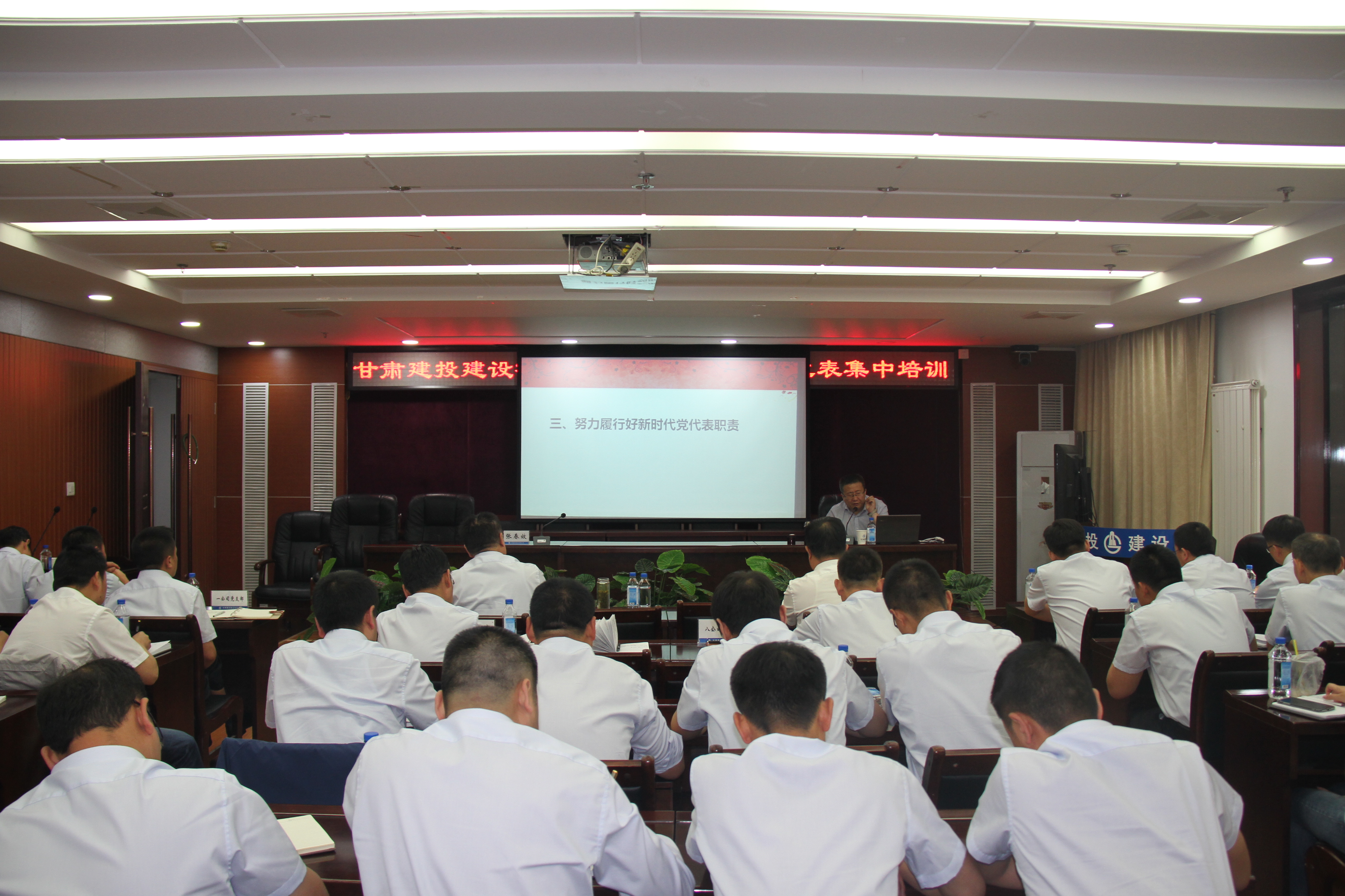 為了確保建設(shè)公司第一次黨代會(huì)勝利召開,進(jìn)一步提高各位黨代表的代表意識(shí)、履職能力和議事決策水平,培養(yǎng)黨代表正確行使權(quán)利和履行義務(wù)的能力,6月8日,建設(shè)公司邀請(qǐng)到中共甘肅省委黨校政治學(xué)教研部主任陳永勝教授為建設(shè)公司第一次黨代會(huì)74名代表進(jìn)行集中培訓(xùn)。