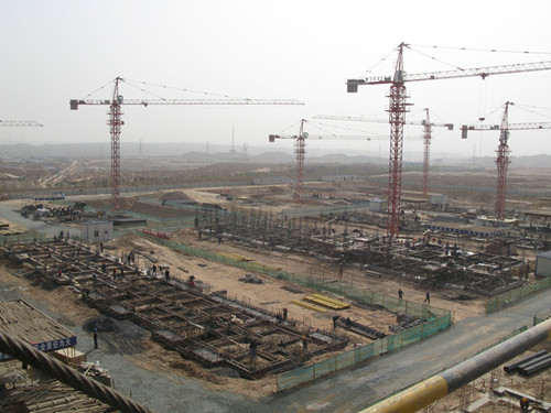 目前,在建設工地上,看到的是一派熱火朝天的景象,大卡車、鏟車、塔吊等轟鳴作響,30多名管理人員,1000多名工人正揮汗如雨,你追我趕地奮戰(zhàn)在各自的施工點上。