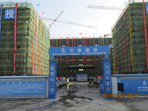 2013年6月29日,陽光明媚,整個(gè)嘉峪關(guān)市南市區(qū)都充滿了喜氣洋洋的氣氛,在這美好的日子里,嘉峪關(guān)市酒鋼三中新建校區(qū)一期工程封頂儀式隆重舉行,前來參加儀式的人中有教育局的相關(guān)領(lǐng)導(dǎo)、酒鋼三中的領(lǐng)導(dǎo)、資深老教師以及與施工密切相關(guān)的各方代表近100人見證了這個(gè)激動人心的時(shí)刻。