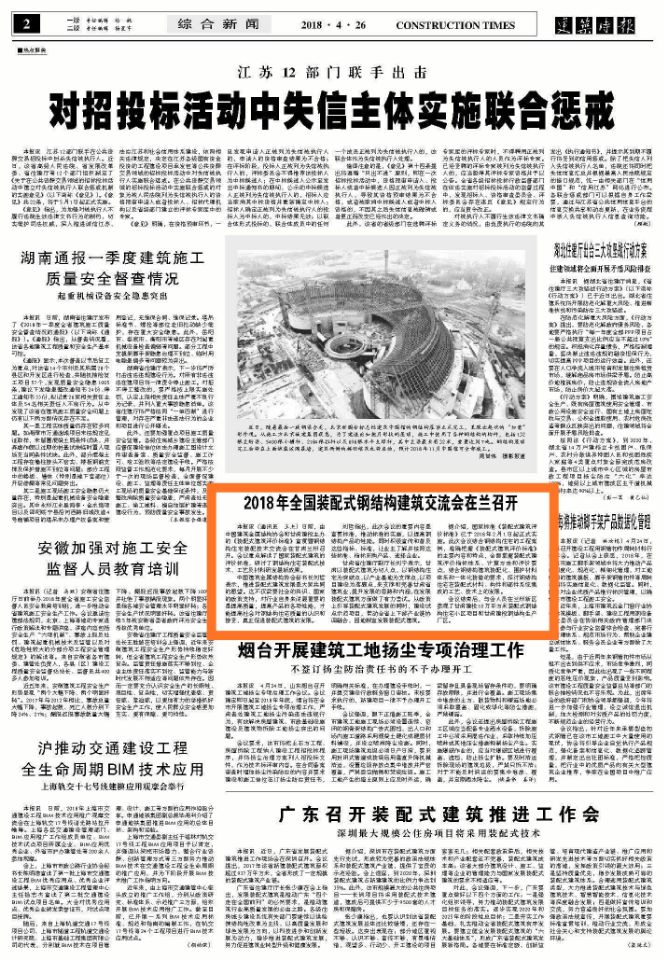 建筑時(shí)報(bào):2018年全國(guó)裝配式鋼結(jié)構(gòu)建筑交流大會(huì)在蘭召開(kāi)