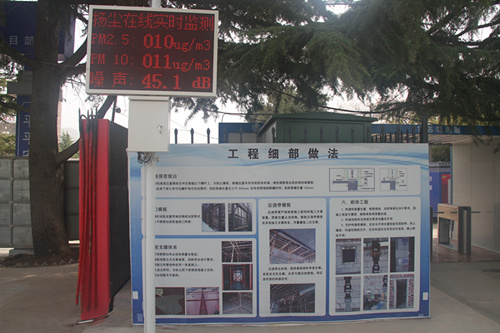 該工程施工過程中,項目部貫徹“以資源的高效利用為核心,以環(huán)保為優(yōu)先”的指導(dǎo)方針,為滿足綠色施工需要,項目部在施工現(xiàn)場安裝了視頻監(jiān)控系統(tǒng),揚塵在線監(jiān)測系統(tǒng),基坑臨邊防護(hù)上設(shè)置噴霧降塵系統(tǒng),大門口設(shè)置洗車臺,對進(jìn)出車輛進(jìn)行沖洗,防止將泥帶出工地,現(xiàn)場非硬化地面實施抑塵劑噴涂固化和防塵網(wǎng)覆蓋,有效降低了土方施工對周邊環(huán)境的揚塵污染。同時在基坑上部設(shè)置了地下水回收利用裝置,實時將地下降水抽出并經(jīng)沉淀處理的地下水,收集的雨水等水資源源源不斷地經(jīng)變頻設(shè)備打至用水點,大大提高了水資源的二次利用效率。在保證質(zhì)量、安全的前提下,通過科學(xué)管理和技術(shù)進(jìn)步,最大限度的節(jié)約資源和減少對環(huán)境負(fù)面影響的施工活動,確保實現(xiàn)四節(jié)一環(huán)保的目標(biāo)。