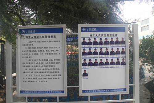 根據(jù)該工程項目確?!疤焖形拿鞴さ亍?、“甘肅省省級文明工地”的目標(biāo)計劃,項目部編制了具有針對性的、符合現(xiàn)場實際的文明施工規(guī)劃,確定文明施工標(biāo)準(zhǔn)。生產(chǎn)區(qū)、辦公區(qū)、生活區(qū)平面等布置,材料加工與堆放嚴(yán)格按施工現(xiàn)場文明施工規(guī)劃圖實施。同時結(jié)合項目部實際嚴(yán)格落實甘肅建投企業(yè)“VIS”視覺識別系統(tǒng),對門頭、企業(yè)宣傳用語、宣傳欄、管理人員和作業(yè)人員工作服、安全帽、胸牌,辦公用品等都進(jìn)行了統(tǒng)一規(guī)范。