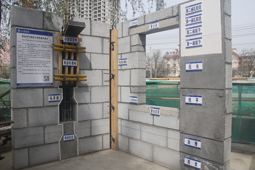項目部堅持“方案先行、樣板引路、過程控制、持續(xù)改進(jìn)”總的指導(dǎo)原則,通過精心策劃,認(rèn)真落實分部分項工程“樣板引路制”,精心制作了樓梯鋼筋、模板、混凝土,砌體,抹灰、涂飾等實體樣板。同時項目部積極應(yīng)用建筑業(yè)“十項”新技術(shù)中的7大項15小項技術(shù),在每一道工序開始施工之前,項目技術(shù)負(fù)責(zé)首先對管理人員進(jìn)行技術(shù)交底,然后再對班組進(jìn)行技術(shù)交底,項目部施工采用了最新的互聯(lián)網(wǎng)二維碼掃描系統(tǒng),輔助管理人員控制施工質(zhì)量,通過掃描二維碼可以詳細(xì)了解施工技術(shù)參數(shù)、圖紙、規(guī)范要求和施工責(zé)任人技術(shù)交底等,便于管理人員、監(jiān)理、建設(shè)單位檢查、復(fù)核施工質(zhì)量,達(dá)到施工質(zhì)量過程控制。