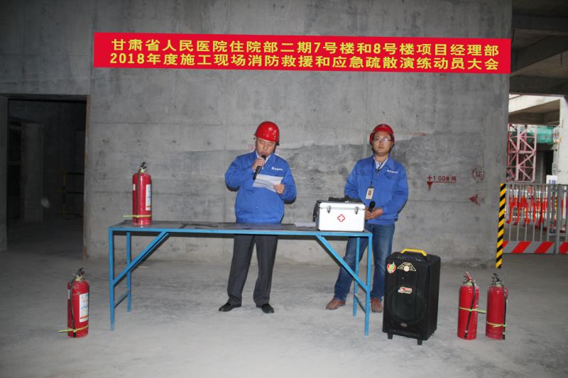 省人民醫(yī)院住院部二期7#、8#樓項目部 組織開展消防應(yīng)急救援演練