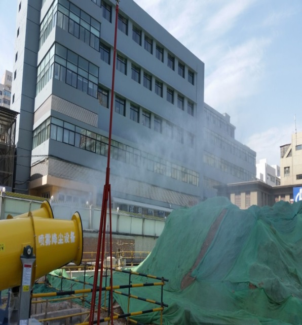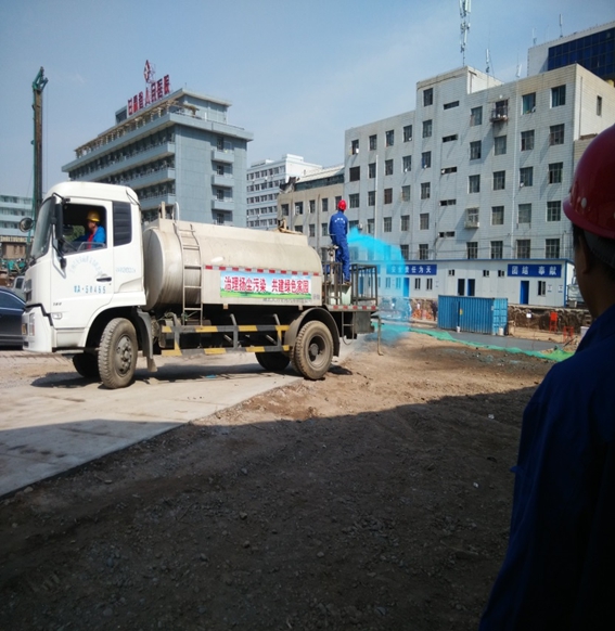 現(xiàn)場(chǎng)辦公室、現(xiàn)場(chǎng)圍墻、基坑四周、主體結(jié)構(gòu)防護(hù)欄桿等設(shè)施實(shí)施占地面積小,組裝、拆除靈活、方便,回收利用率高,具有可觀的經(jīng)濟(jì)、環(huán)境和社會(huì)效益。項(xiàng)目部在土方開挖階段,嚴(yán)格按照市委市政府大氣治理相關(guān)文件要求,積極落實(shí)各項(xiàng)治污防塵措施,編制“施工現(xiàn)場(chǎng)揚(yáng)塵治污方案”,依照方案實(shí)施并根據(jù)揚(yáng)塵監(jiān)測(cè)數(shù)據(jù)不斷改進(jìn),有效降低了土方施工對(duì)醫(yī)院及周邊環(huán)境的揚(yáng)塵污染,切實(shí)達(dá)到了市委市政府要求的“6個(gè)100%”,確保了本工地防塵治污達(dá)到要求,受到各方一致好評(píng),被蘭州市“蘭州藍(lán)”宣傳片選做樣板工地。