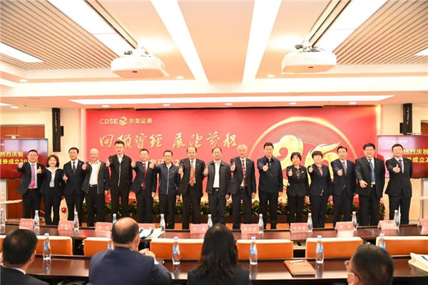 陳牧原和班子成員陪同受邀領導參觀了20周年宣傳展板,一張張歷史圖片、一個個記憶瞬間,無不反映著公司奮勇前行、攻堅克難、不斷超越的發展歷程。在“兩個一百年”奮斗目標的歷史交匯時刻,在全體員工堅持不懈的努力拼搏下,華龍證券必將凝聚共識,差異經營,錯位發展,奮力成長為業績優良、專業精湛的特色券商。