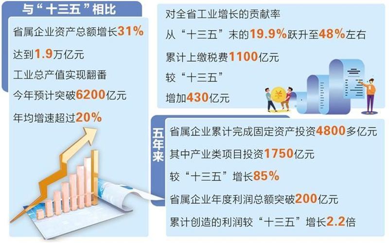 記者從省政府新聞辦12月2日召開的“決勝收官‘十四五’ 爭先進位話發展”主題系列新聞發布會上獲悉,省國資國企系統圓滿完成“十四五”規劃目標任務。與“十三五”相比,省屬企業資產總額增長31%、達到1.9萬億元,工業總產值實現翻番,今年預計突破6200億元,年均增速超過20%,對全省工業增長的貢獻率,從“十三五”末的19.9%躍升至48%左右,累計上繳稅費1100億元,較“十三五”增加430億元。